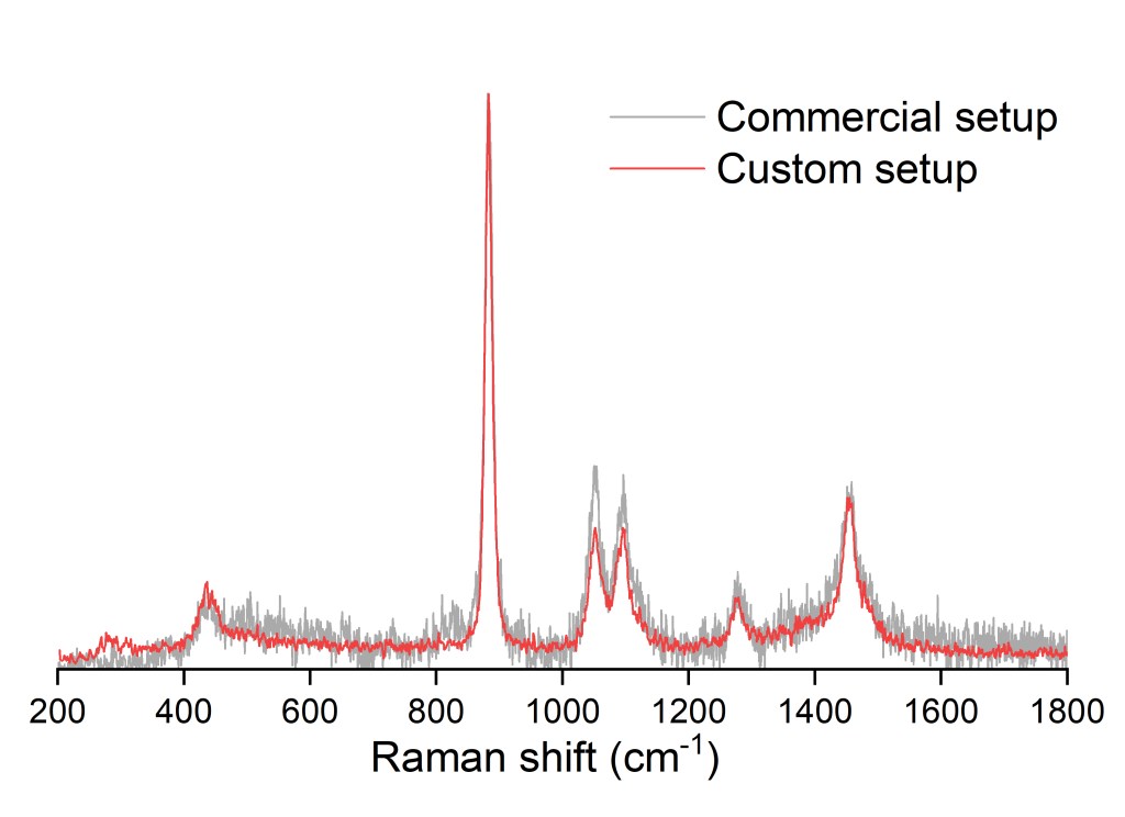 In a currently running project, I have been constructing a new spectrometer for near-infrared Raman spectroscopy. As Raman scattering is an inherently weak process, highly sensitive detection is needed in the spectral range of interest. However, most near-infrared Raman setups still rely on costly detectors, which significantly reduce the applicability of this method. Meanwhile, using near-infrared excitation (e.g., at 785 nm) reduces sample fluorescence, which is a particularly attractive feature in biophysical applications. With the new spectrometer, the sensitivity is improved to an extent that allows to build it into a custom Raman microscope.